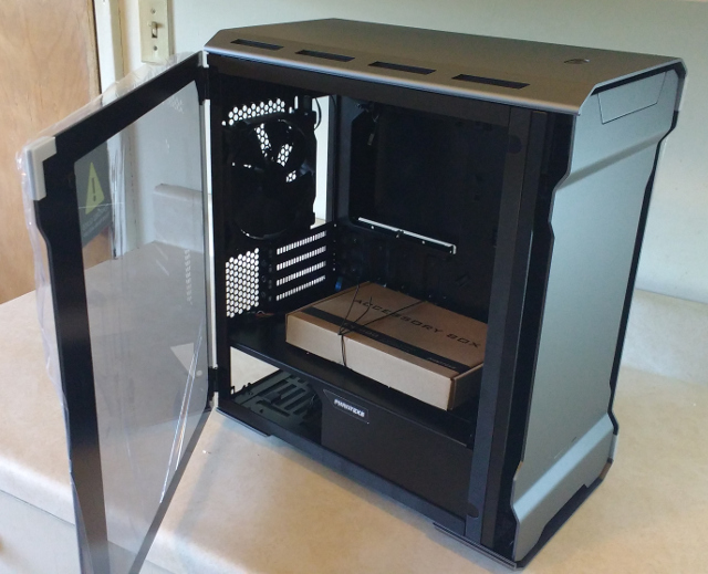 Of course, when building such a vessel, you start with the hull (Computer Case). Introducing the Phanteks Enthoo Evolv. A fully steel chassis accented with 3mm Aluminum plating wrapped in tempered glass.